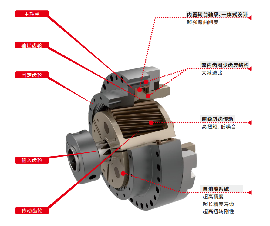 扁平中空大速比,超长精度寿命,超强弯曲刚度